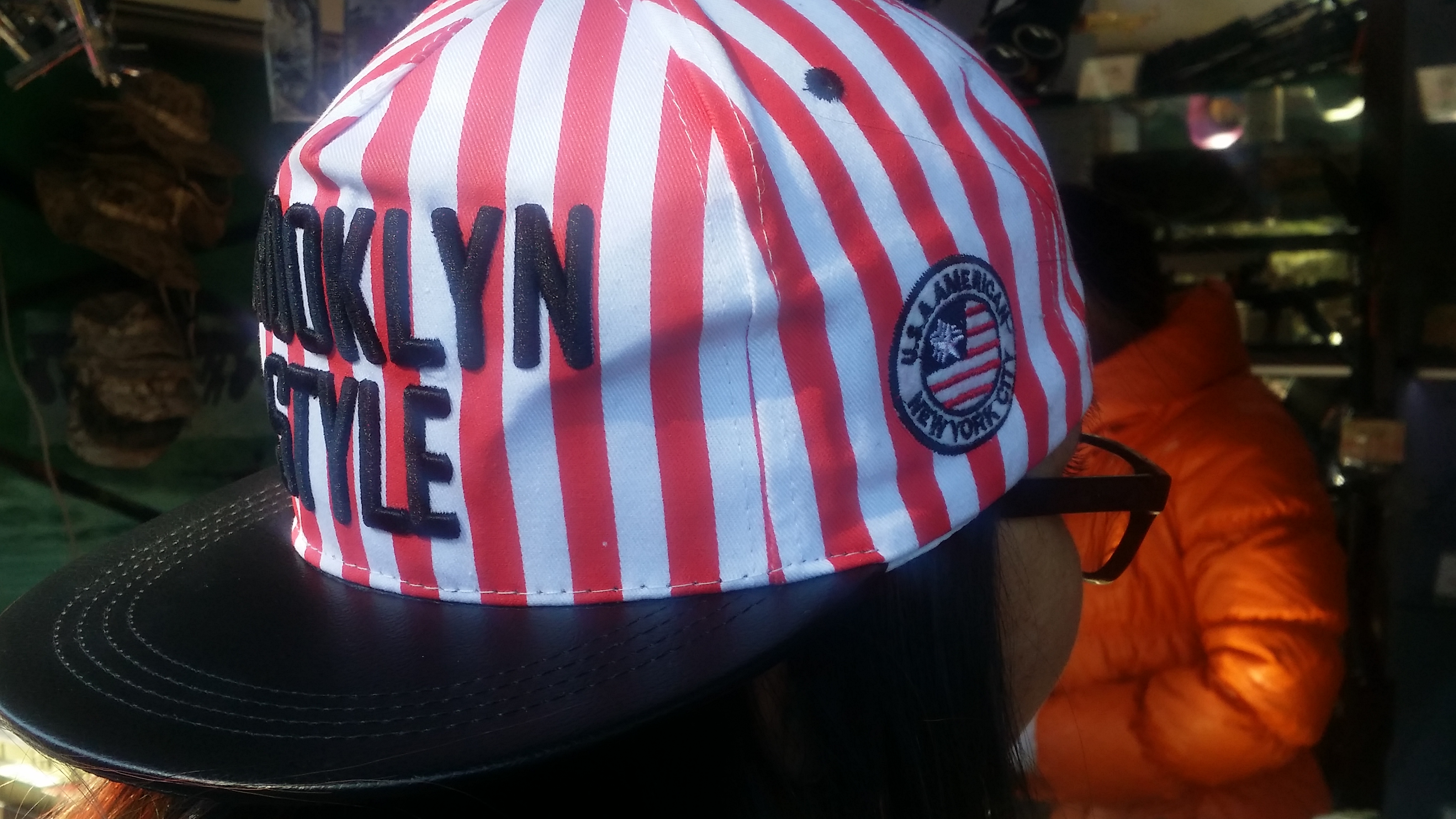 Standing in a long line for a half an hour and being the only Caucasian within shouting distance, I got to visit with my queue neighbors quite a bit. About 30 of them were all wearing the same baseball cap, pictured at the top of this article, a garish, red, white and black striped affair, with big, thick, embossed letters screaming, “BROOKLYN STYLE”. On one side was a round logo, sporting a modified stars and stripes flag, saying, “U.S.A. AMERICAN – NEW YORK CITY”. Jeez Louise, I was appalled, but not wanting to be moralistic and cause any loss of face, I did not say anything. After all, China is a free country. But, I was saying to myself,